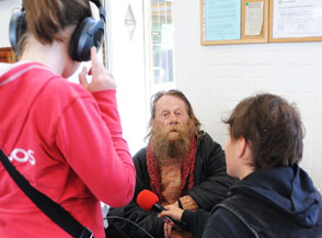 Einen Monat lang sind jugendliche und erwachsene „Liederreporter“ aus dem Umfeld der Theaterwerkstatt Bethel unter Anleitung von Bernhard König durch die Stadt gezogen und haben Bielefelderinnen und Bielefelder nach „ihrem“ Lied und der dazugehörigen Geschichte befragt: Auf der Straße und in der Universität, in Altenheimen und Sozialeinrichtungen, in religiösen Gemeinden und interkulturellen Begegnungszentren.
