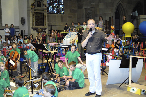 250 Stuttgarter Grundschulkinder haben über vier Monate hinweg eigene Orgeln erfunden und gebaut: Phantasievolle Gebilde aus Flaschen und Filmdöschen, Eisenstangen und Legosteinen, Blasebälgen und Blockflöten, einer Murmelbahn und einem Plantschbecken mit Wasserkanistern. Die Lehrer und Schüler wurden von Suttgarter Dozenten mit Workshops, Schulbesuchen und Exkursionsangeboten betreut. Zum Abschluss erhielt jede Schulklasse einen Klassenzimmer-Besuch von Bernhard König, der die Erfindungen der Kinder gemeinsam mit der großen Mühleisenorgel der Stuttgarter Stiftskirche, in einer 25minütigen Komposition zusammenfasste und das Abschlusskonzert moderierte.