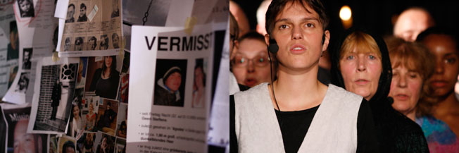 „Mensch, wo bist du?“ lautet das Motto des 32. Deutschen Evangelischen Kirchentags in Bremen. vermisst:... nimmt dieses Motto wortwörtlich und erzählt in Texten, Tönen und Bildern von Menschen, die unterwegs verschollen, von zu Hause geflüchtet oder im Krieg gefallen sind; von verschleppten Terroropfern oder verirrten Demenzkranken. Und vom Schicksal derer, die zurückbleiben: Vom Stillstehen der Zeit und vom ewigen Karussell der Gefühle.